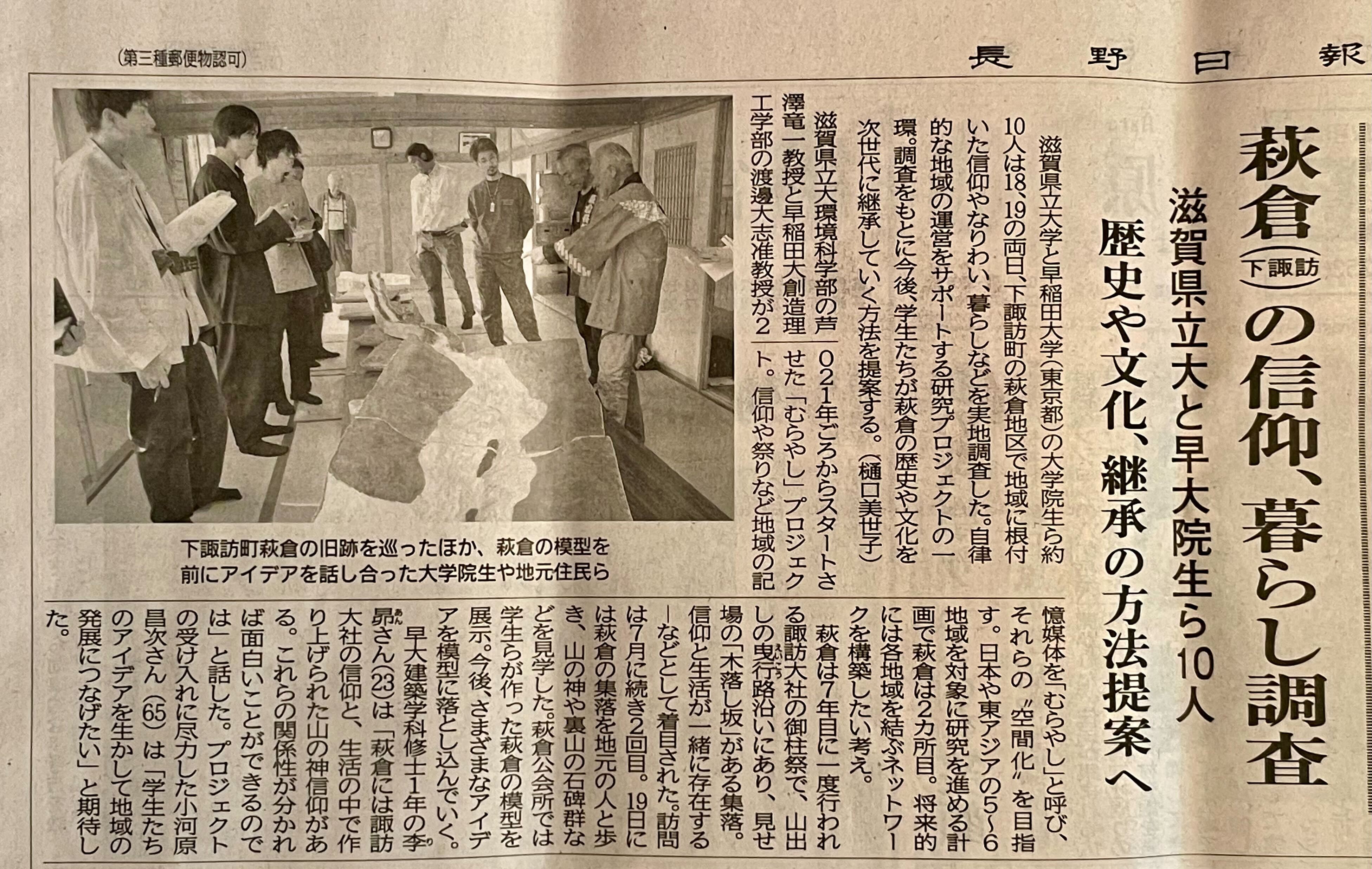 むらやしプロジェクトが、信濃毎日新聞にて紹介されました。